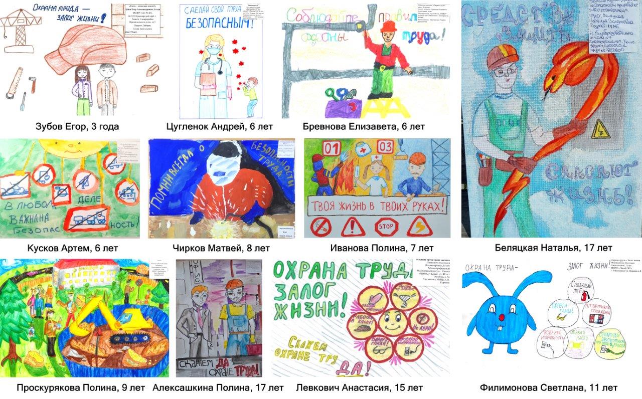 В текущем году на конкурс было заявлено 679 работ. У многих юных художников родители работают на промышленных предприятиях края, поэтому они с детства наслышаны о том, что такое сложные производства и как важно на таких производствах строго соблюдать правила техники безопасности и охраны труда. Например, у Артема Кускова, ставшего обладателем третьего призового места в возрастной группе 3-6 лет, папа – начальник склада взрывчатых материалов на Бородинском разрезе, мама – медсестра в ведомственной МСЧ "Угольщик".
