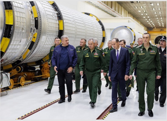 Министр обороны РФ заслушал доклад руководства предприятия о выполнении контрактов по производству стратегического ракетного комплекса «Сармат», и акцентировал внимание руководства предприятия: «Во исполнение решения Президента Российской Федерации осуществляется постановка на боевое дежурство перспективного ракетного комплекса стратегического назначения «Сармат». Переоснащение Ракетных войск стратегического назначения на данный комплекс, который станет основой наземной группировки стратегических ядерных сил России, является приоритетом в обеспечении обороноспособности страны. В настоящее время решается задача по оснащению на головном объекте РВСН первого ракетного полка комплексом «Сармат»», - добавил Министр обороны РФ.