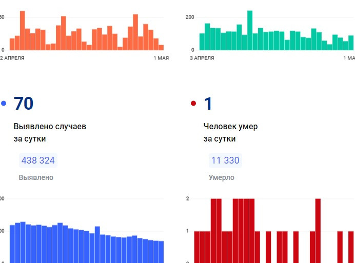 За всё время зафиксировано 438 324 подтверждённых диагнозов (+70 за сутки)