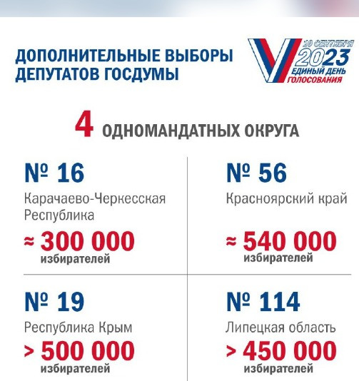 Это округ № 19 в Крыму, округ № 114 в Липецкой области, округ № 56 в Красноярском крае и округ № 16 в Карачаево-Черкесии.
