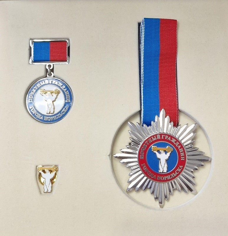 Как сообщалось, в соответствии с действующими нормативными документами о наградной политике Норильска звание Почётного гражданина, как правило, присваивается накануне Дня города. С учётом того, что нынешний год для Норильска юбилейный, в 2023-м почётного звания удостоены два человека, внесшие значимый вклад в развитие города: советник по координации деятельности минерально-сырьевого комплекса Норильского дивизиона аппарата директора компании «Норникель» Талгат Муштекенов, ранее возглавлявший рудник «Комсомольский», и председатель комитета Заксобрания Красноярского края по развитию северных и арктических территорий и делам коренных малочисленных народов Людмила Магомедова.