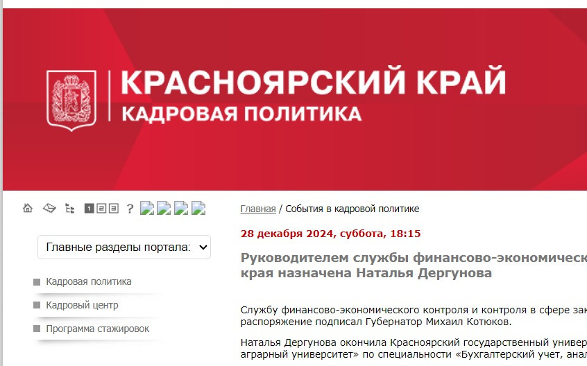 Службу финансово-экономического контроля и контроля в сфере закупок Красноярского края возглавила Наталья Дергунова.