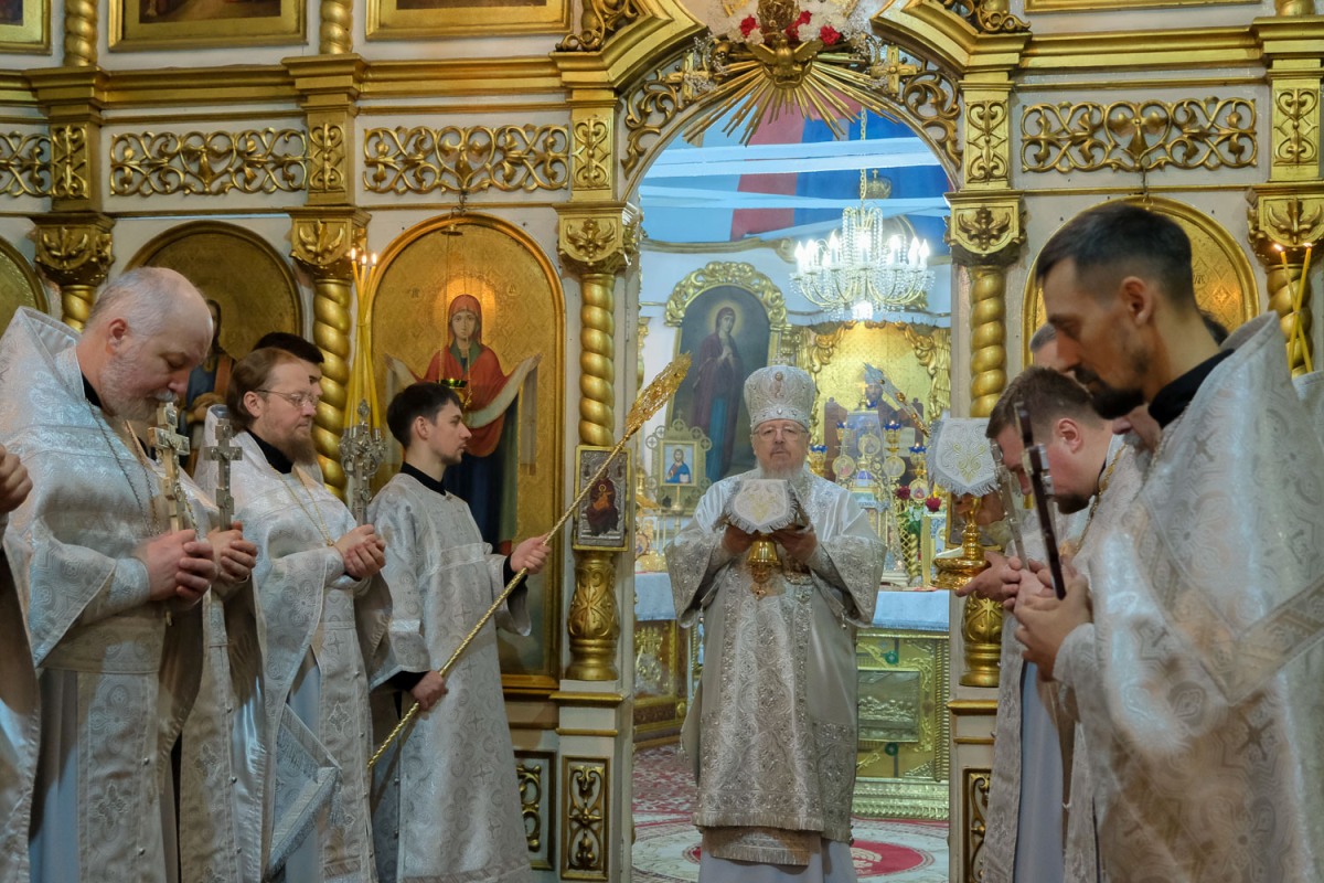 Вечером 4 апреля 2025 года, накануне субботы 5-й седмицы Великого поста — праздника Похвалы Божией Матери (Субботы Акафиста), Преосвященнейший Агафангел, епископ Норильский и Туруханский,