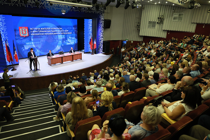Встречу с жителями Михаил Котюков, естественно, начал с рассказа о том, что происходит в Норильске -- это выполнение программы реновации и реализация экологического Серного проекта. В день прямого эфира с утра Михаил Котюков встречался с премьер-министром Михаилом Мишустиным, и тот подтвердил, что объём федерального финансирования по программе развития Норильска будет увеличен в 2 раза. Кроме того, в 4 раза должны вырасти совокупные вложения из бюджета края и заполярного города, что пойдёт на улучшение качества жизни северян.