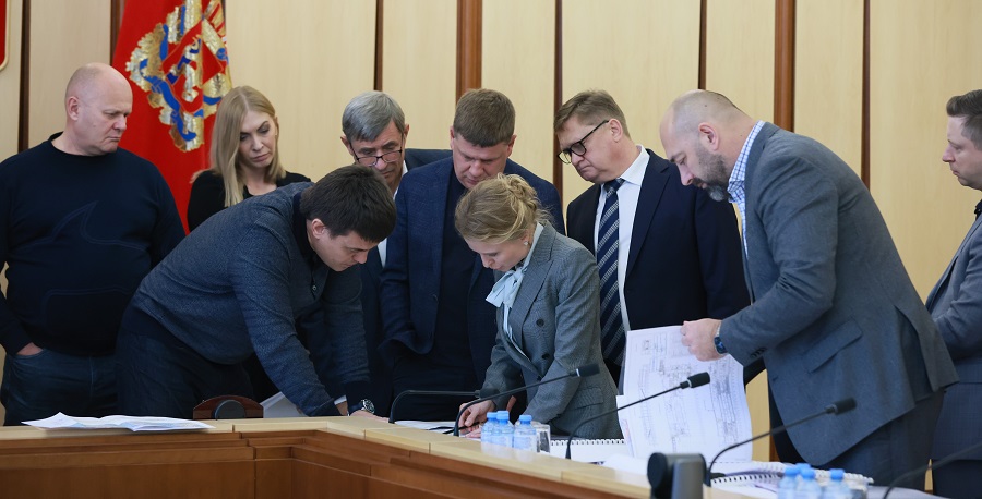 КРАСНОЯРСКИЙ КРАЙ, /НИА-КРАСНОЯРСК/. Губернатор края Михаил Котюков провел совещание по реализации проекта первой линии скоростной транспортной системы Красноярска с руководством компании-подрядчика,