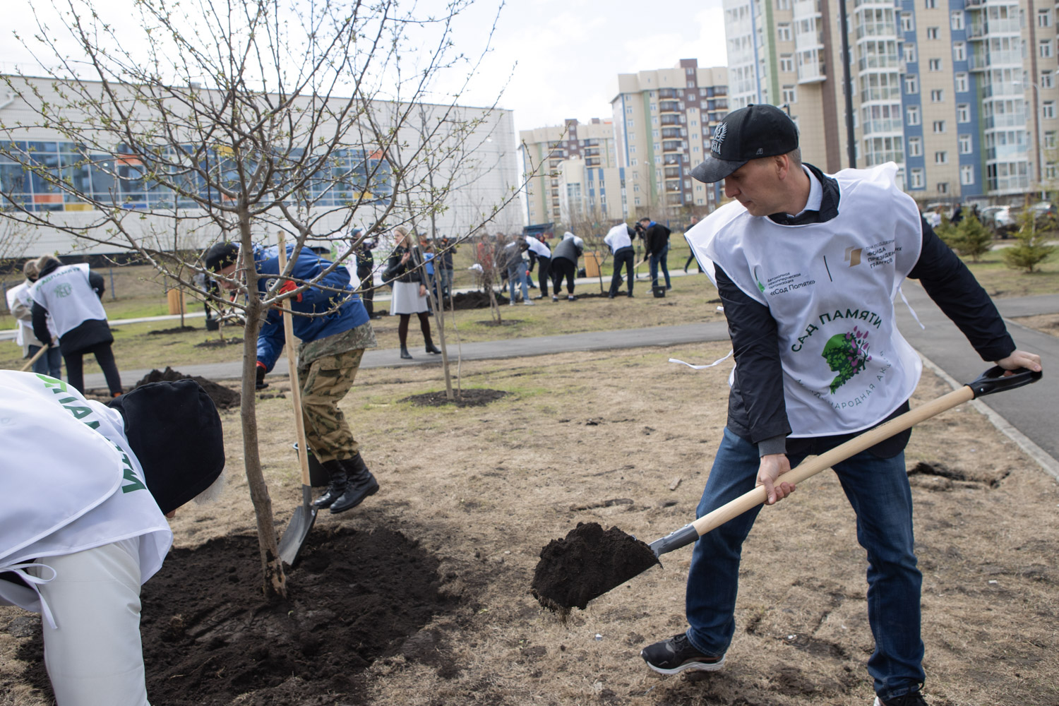 Яблони в память о павших в Великой Отечественной войне высадили в красноярской Покровке