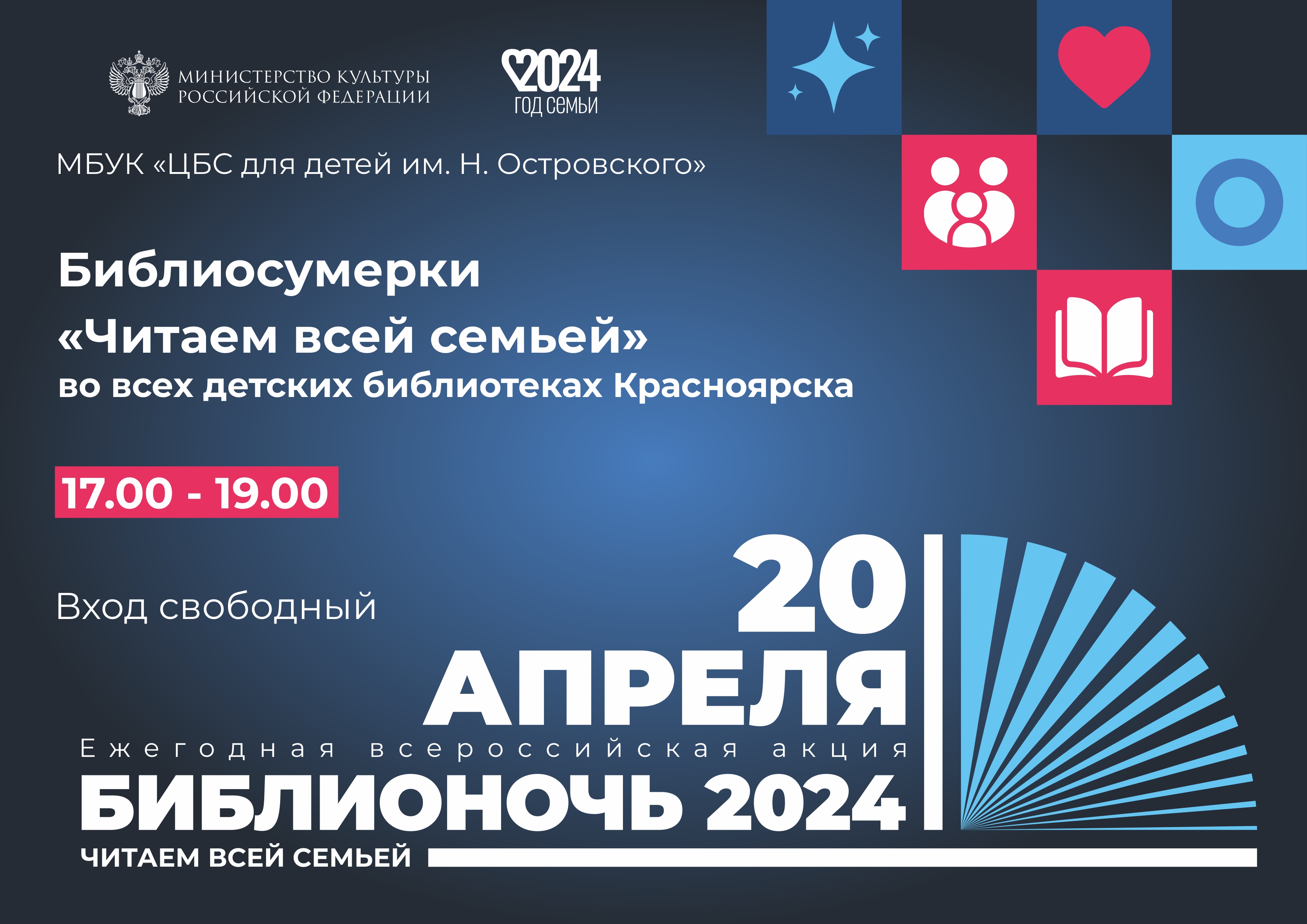 Приглашаем на мероприятия в рамках Всероссийской Акции Библионочь "Читаем всей семьёй".