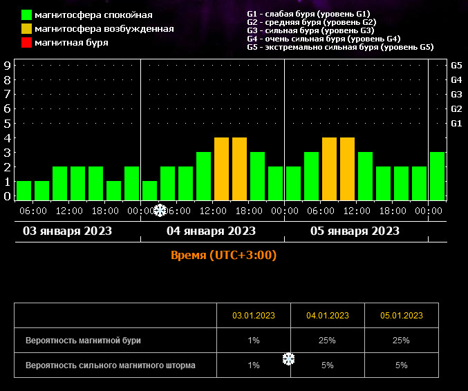 Лаборатория солнечной астрономии Института космических исследований РАН и Института солнечно-земной физики Сибирского отделения РАН поделилась прогнозом магнитных бурь в январе 2023 года.