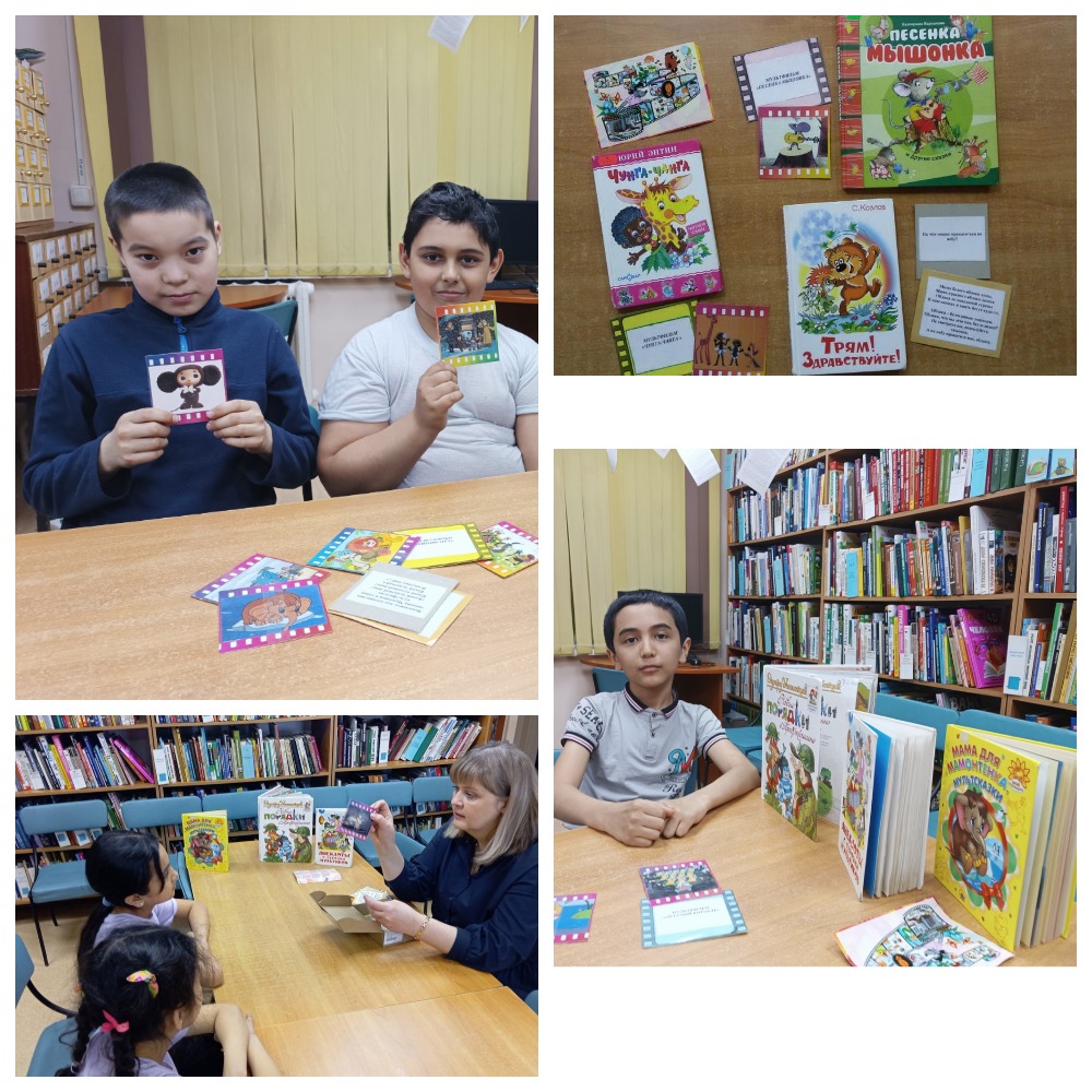 Сегодня наши читатели участвовали в весёлой познавательно-развлекательной игре-викторине на знание песенок из известных мультфильмов, а также познакомились с книгами, по которым были созданы эти фильмы. К примеру, мультфильм «Крошка Енот» был создан по сказке американской писательницы Лилиан Муур «Крошка Енот и тот, кто сидит в пруду».