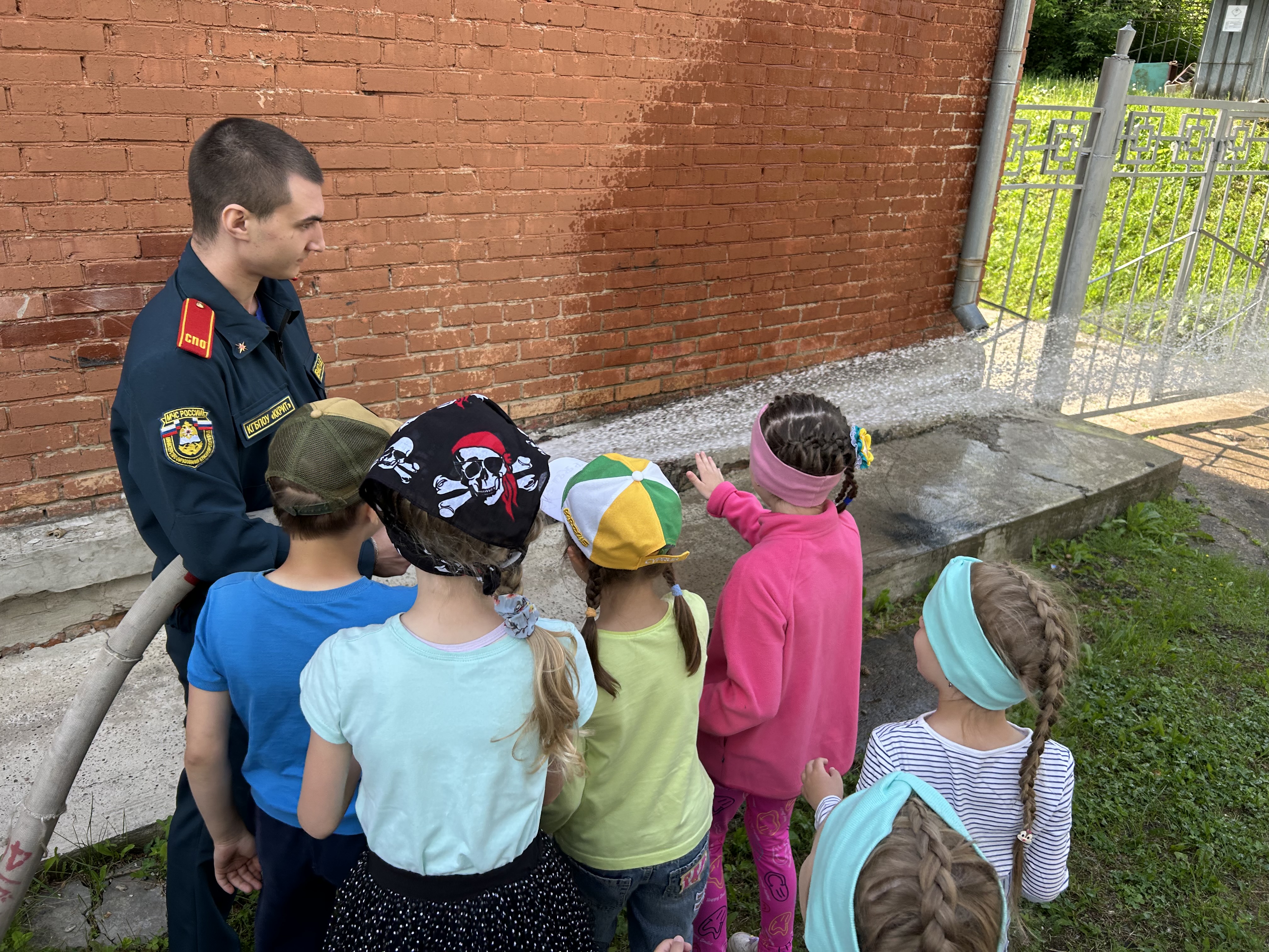 В завершении недели дети старших групп совместно с воспитателями сходили на экскурсию в пожарную часть. Детям показали, как работает пожарная машина, где отдыхают пожарные и для того, чтобы пожарные не пострадали, во время пожара у них есть специальные комбинезоны из огнеупорных материалов, каска, огнеупорные рукавицы. Мы хотим поблагодарить сотрудников пожарной части за интереснейшую экскурсию. После встречи с пожарными, ребята долго обменивались впечатлениями, что они увидели в «Пожарной части». Вечером ребята делились своими впечатлениями с родителями.