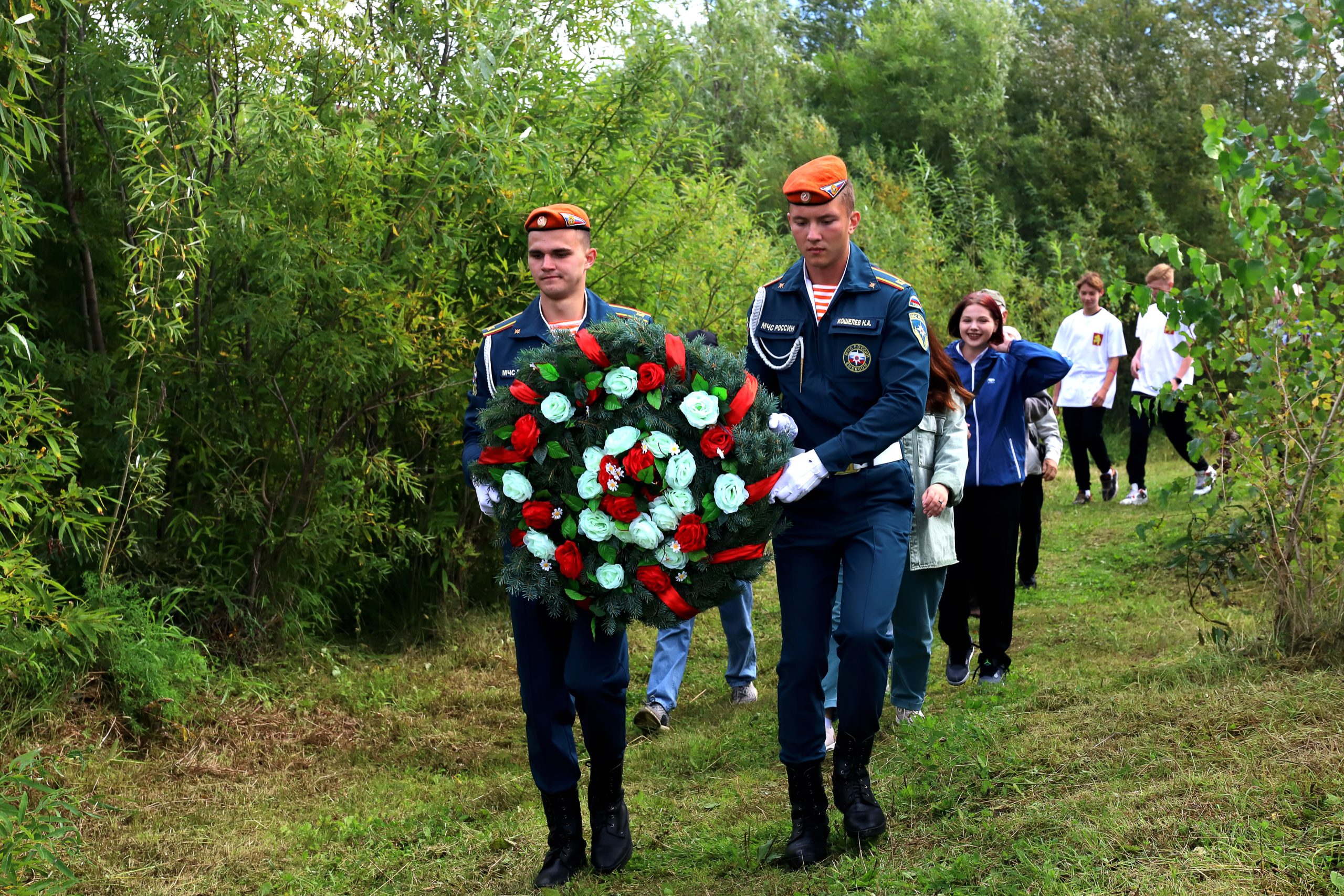 Курсанты учебного заведения МЧС России являлись центральными участниками значимого для города события. Они несли почетный караул возле памятного камня, а в финале мероприятия спустили на воду реки венок в честь первопроходцев секретной стройки.