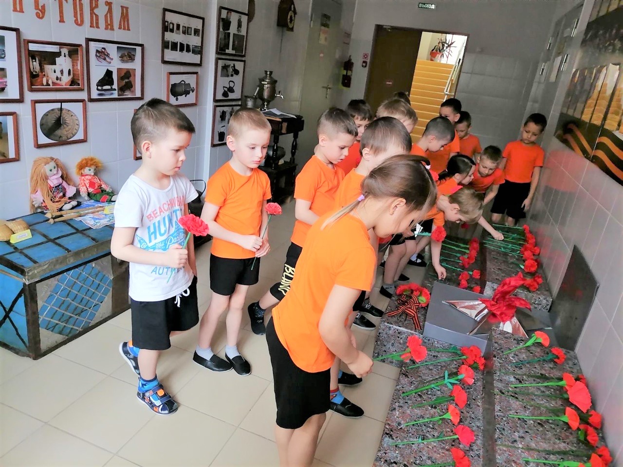 Накануне Дня Победы воспитанники детского сада №17 вместе с родителями и воспитателями изготовили бумажные гвоздики и возложили их к «Вечному огню», расположенному в стенах образовательного учреждения.