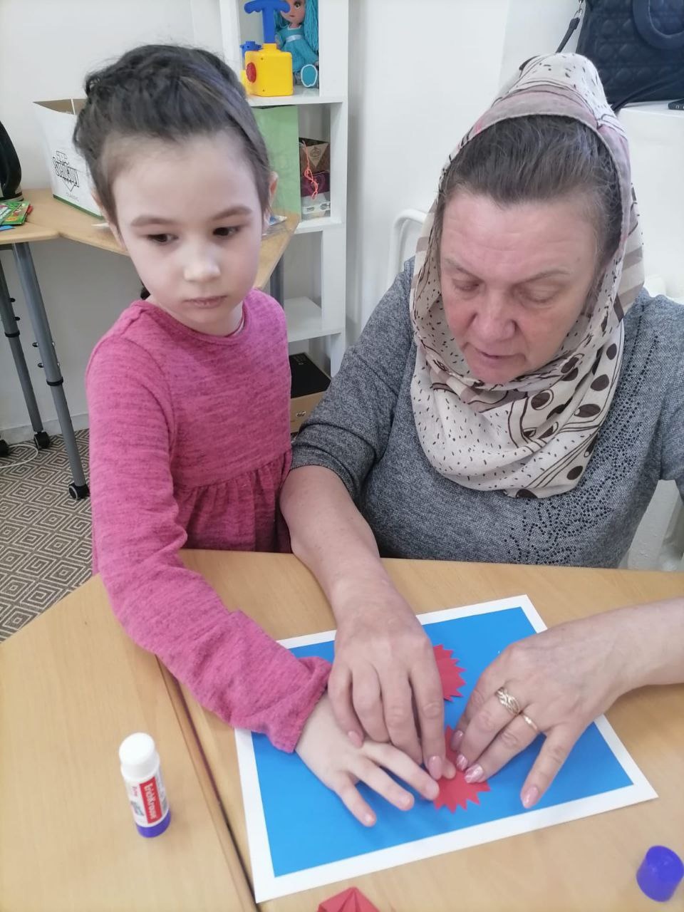 Кроме этого, в преддверии Дня Победы социальный педагог Елена Мирошниченко провела мастер-класс по изготовлению цветов и поздравительных открыток.