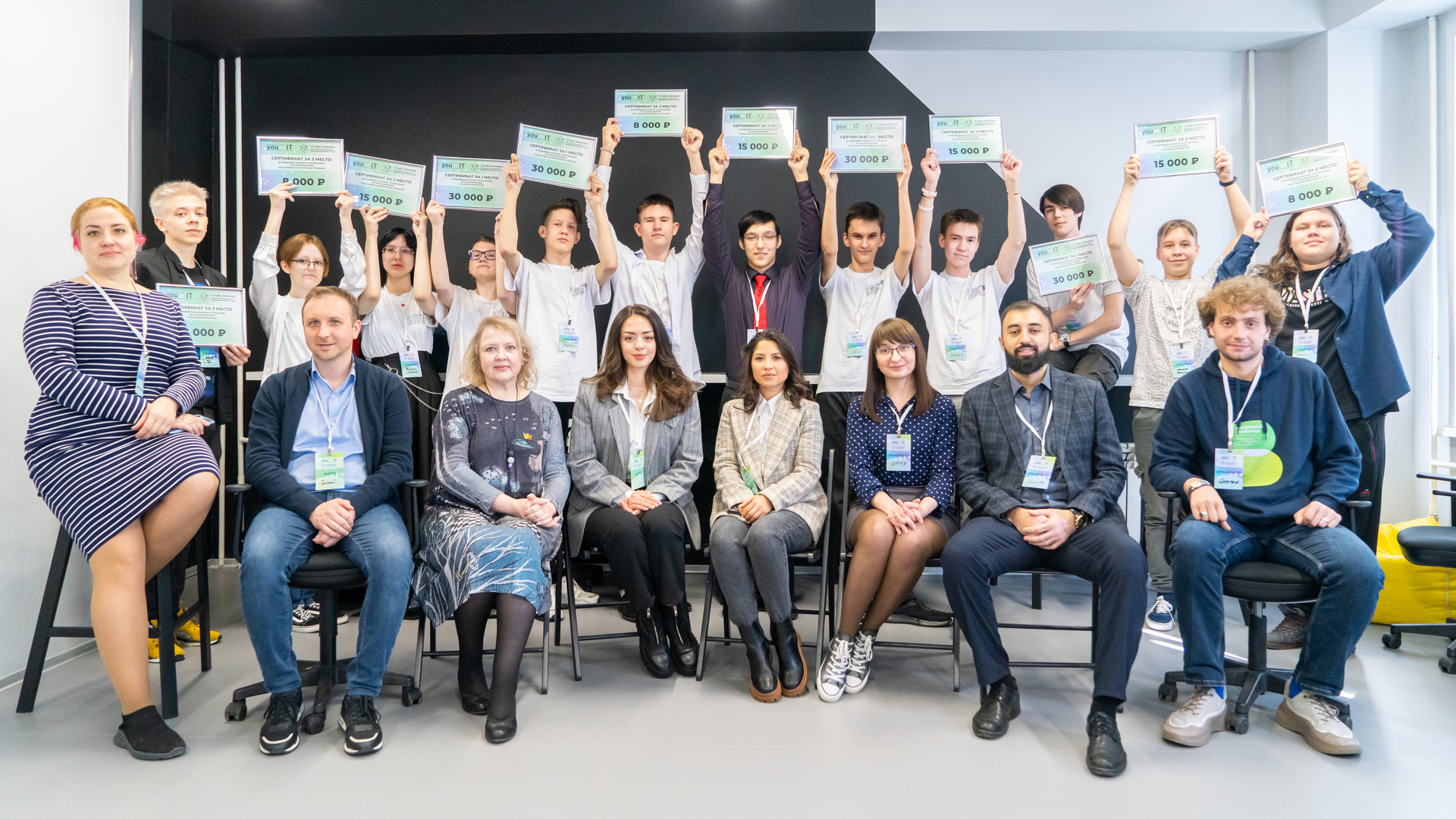 Победителей и призеров хакатона наградили сертификатами на приобретение техники с весьма солидным номиналом. Также приятные подарки и стильную сувенирную продукцию получили все выпускники проекта «Юнит».