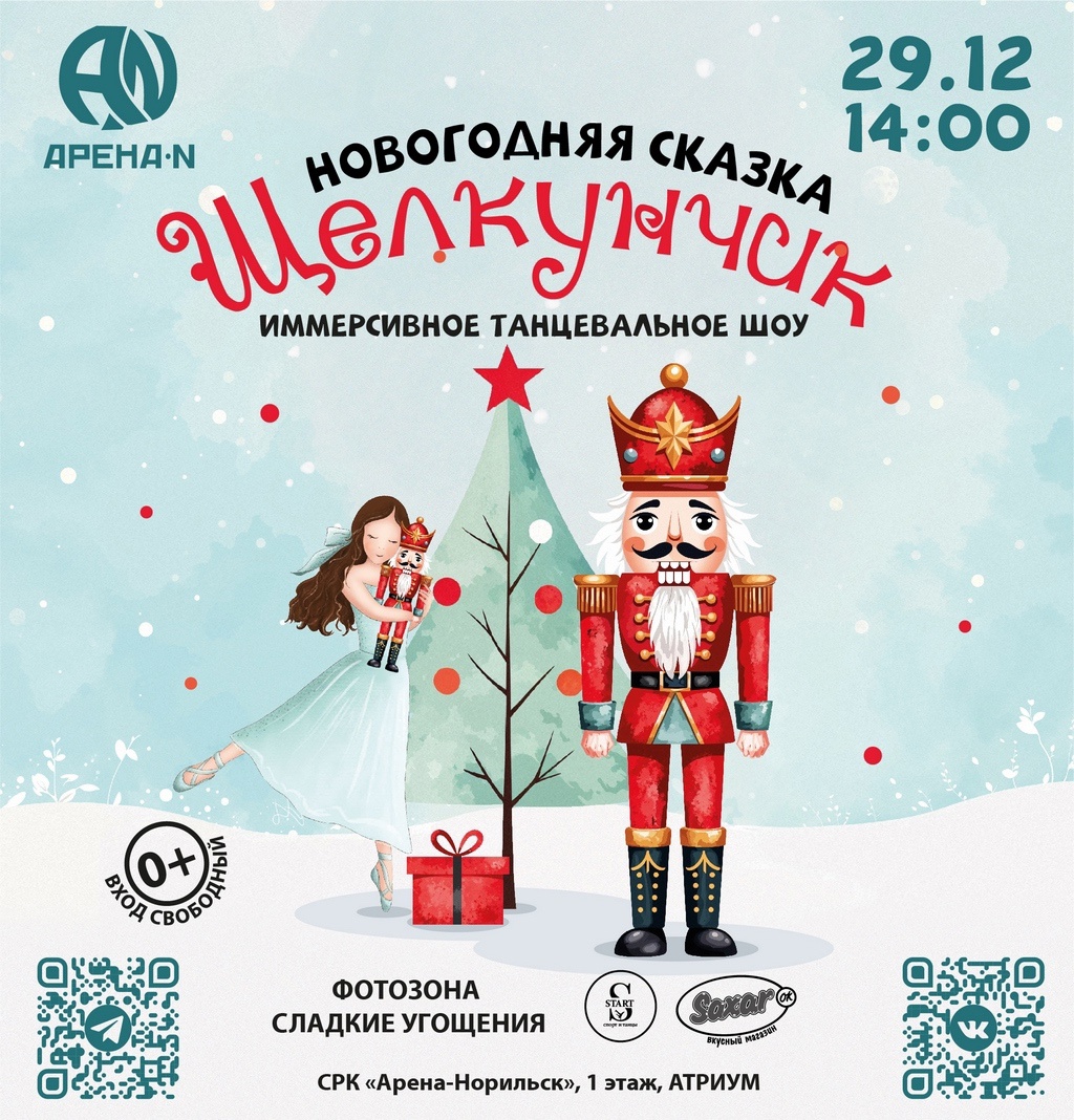 #НОРИЛЬСК. «Северный город» – Спортивно-развлекательный комплекс «Арена» 29 декабря окунет норильчан в предновогоднюю атмосферу и покажет на первом этаже в атриуме музыкальную сказку «Щелкунчик».