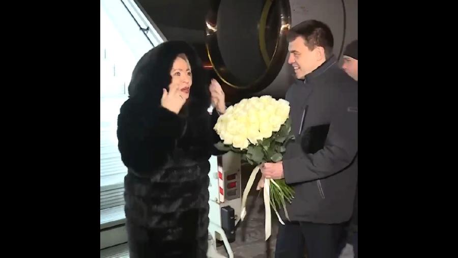 «Встретил в аэропорту делегацию Совета Федерации во главе с председателем Валентиной Ивановной Матвиенко. Завтра будем работать на объектах образования, здравоохранения и промышленности, а также обсудим вопросы социально-экономического развития нашего региона».