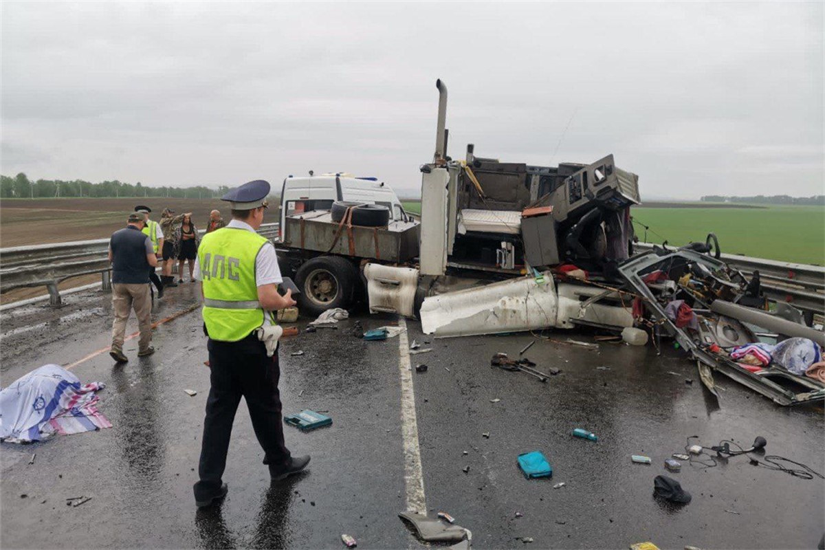 Под Красноярском из-за смертельной аварии с двумя грузовиками и легковым автомобилем полностью перекрыли дорогу