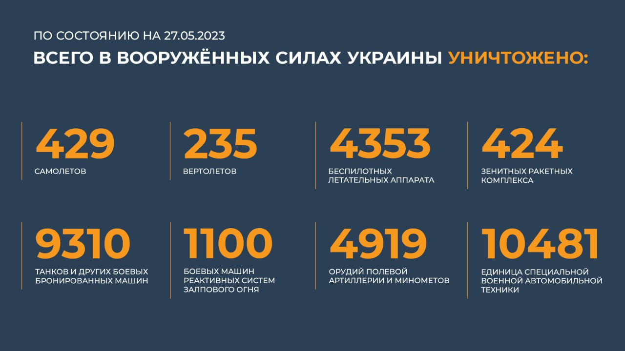 Сводка Минобороны РФ о ходе специальной военной операции на 27 мая 2023 года