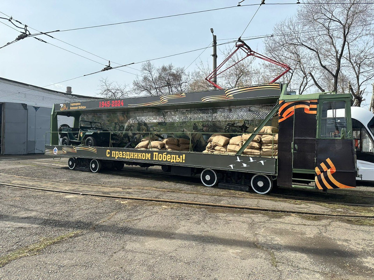 Автор фото: t.me/adm_krasnoyarsk На улицах Красноярска в День Победы появится особая трамвайная платформа.