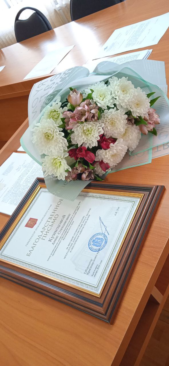 На очередном заседании КДН Глава района Петр Малышкин вручил члену комиссии Анне Степановне Кузнецовой Благодарственное письмо от имени Губернатора Красноярского края Александра Усса.