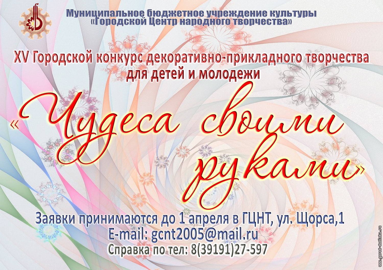 Городской Центр народного творчества приглашает детей и молодёжь в возрасте от 4 до 17 лет принять участие в XV городском конкурсе декоративно-прикладного творчества «Чудеса своими руками — 2024».