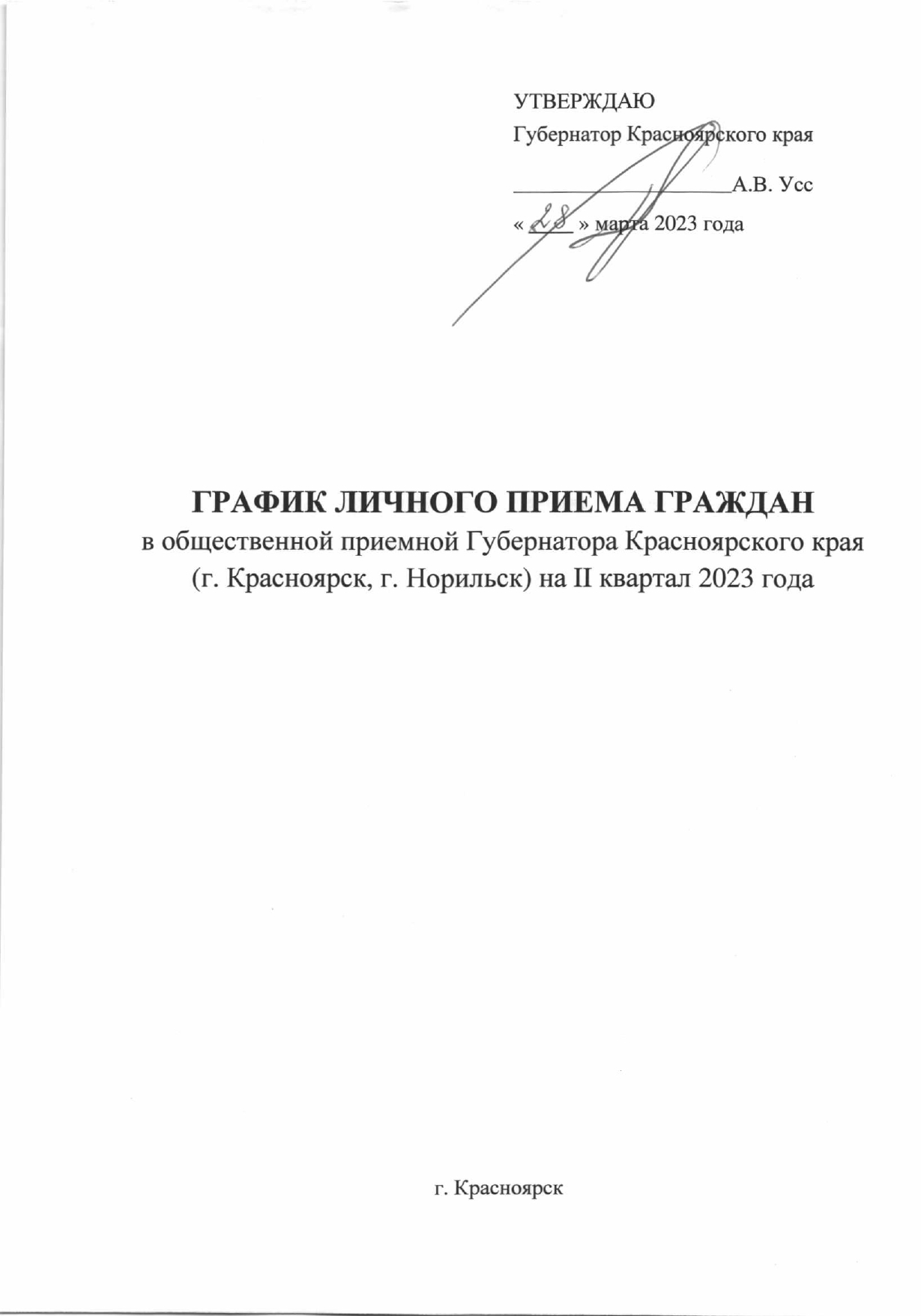 График личного приема граждан в общественной приемной Губернатора края (г. Красноярск) на II квартал 2023 года