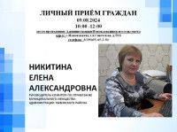 9 августа 2024 года с 10:00 до 12:00 часов в администрации Новокамалинского сельсовета пройдет личный прием граждан, который проведет руководитель комитета по управлению муниципальным имуществом Елена Александровна Никитина.