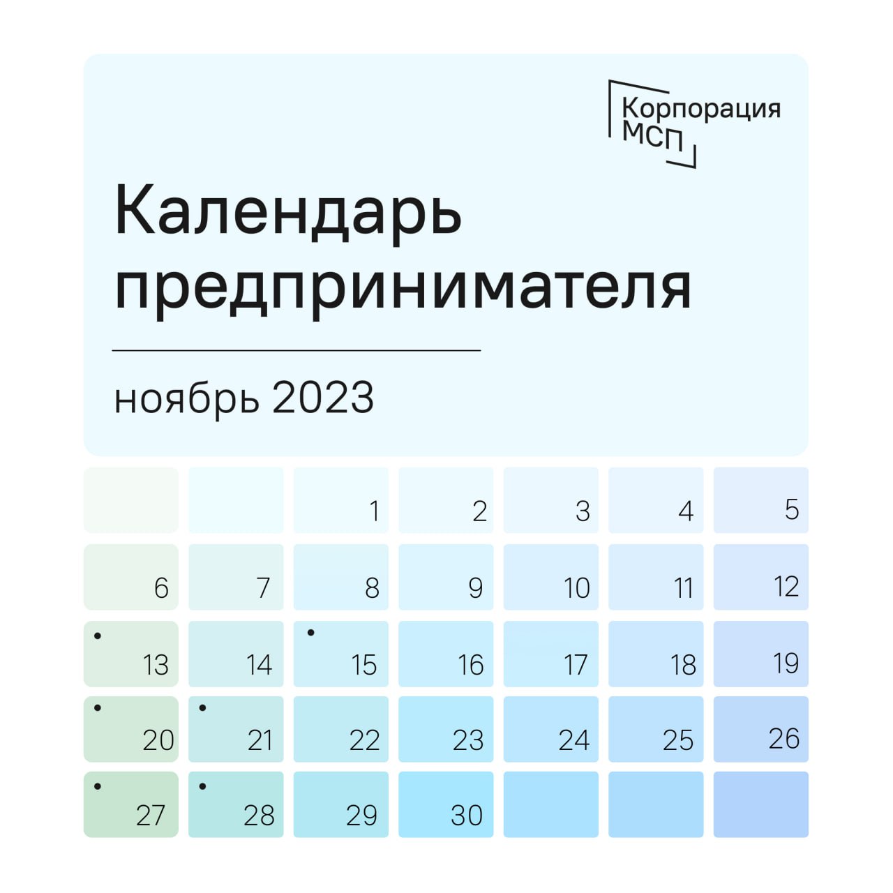 Календарь предпринимателя на ноябрь 2023 года