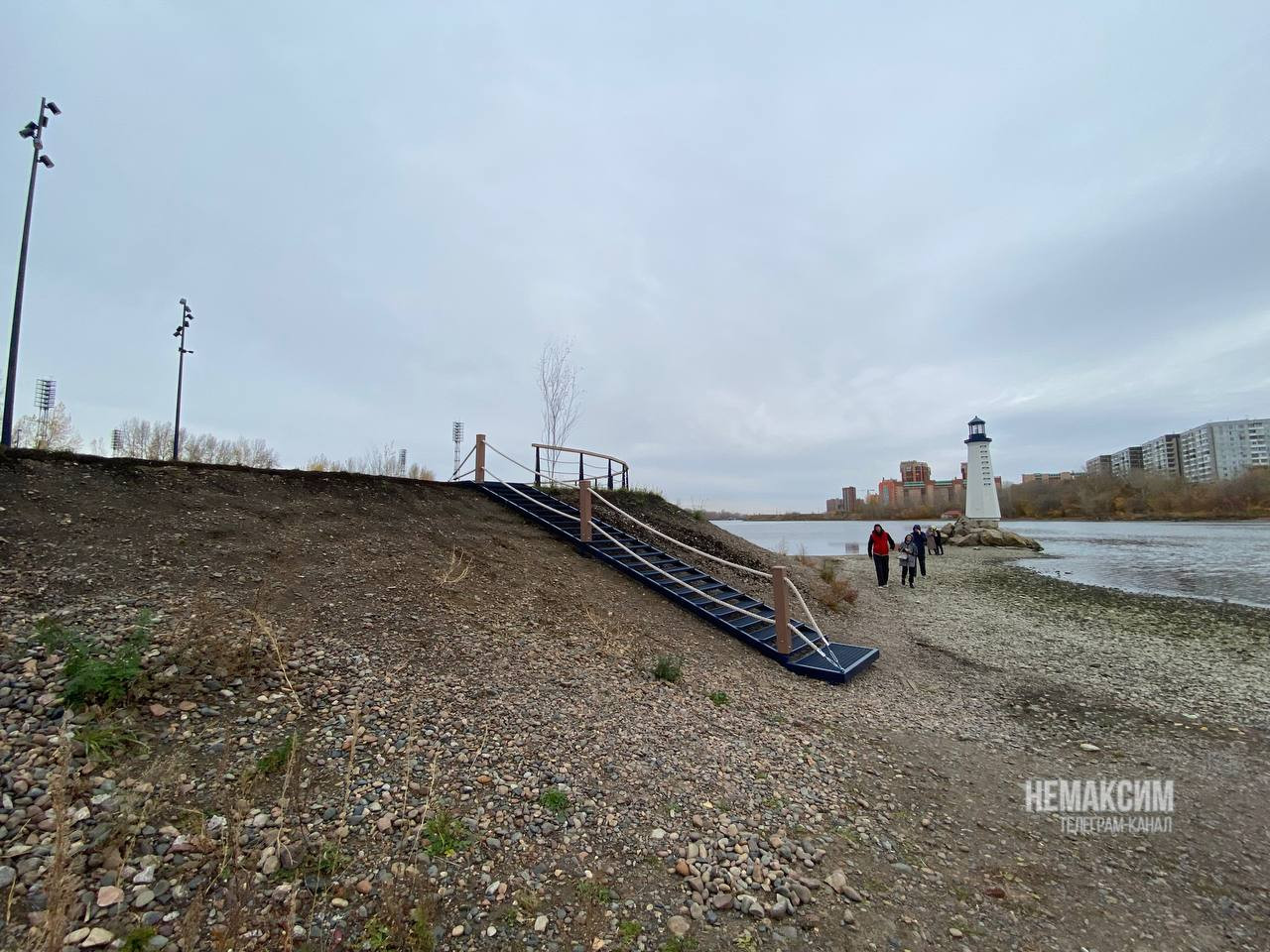 Как упал уровень реки, наглядно демонстрируют снимки местного фотографа Андрея Максимова . На изображении, сделанном 11 октября, маяк возле острова Отдыха окружён водой. А на сегодняшнем фото видно, что до башни можно спокойно дойти по суше.