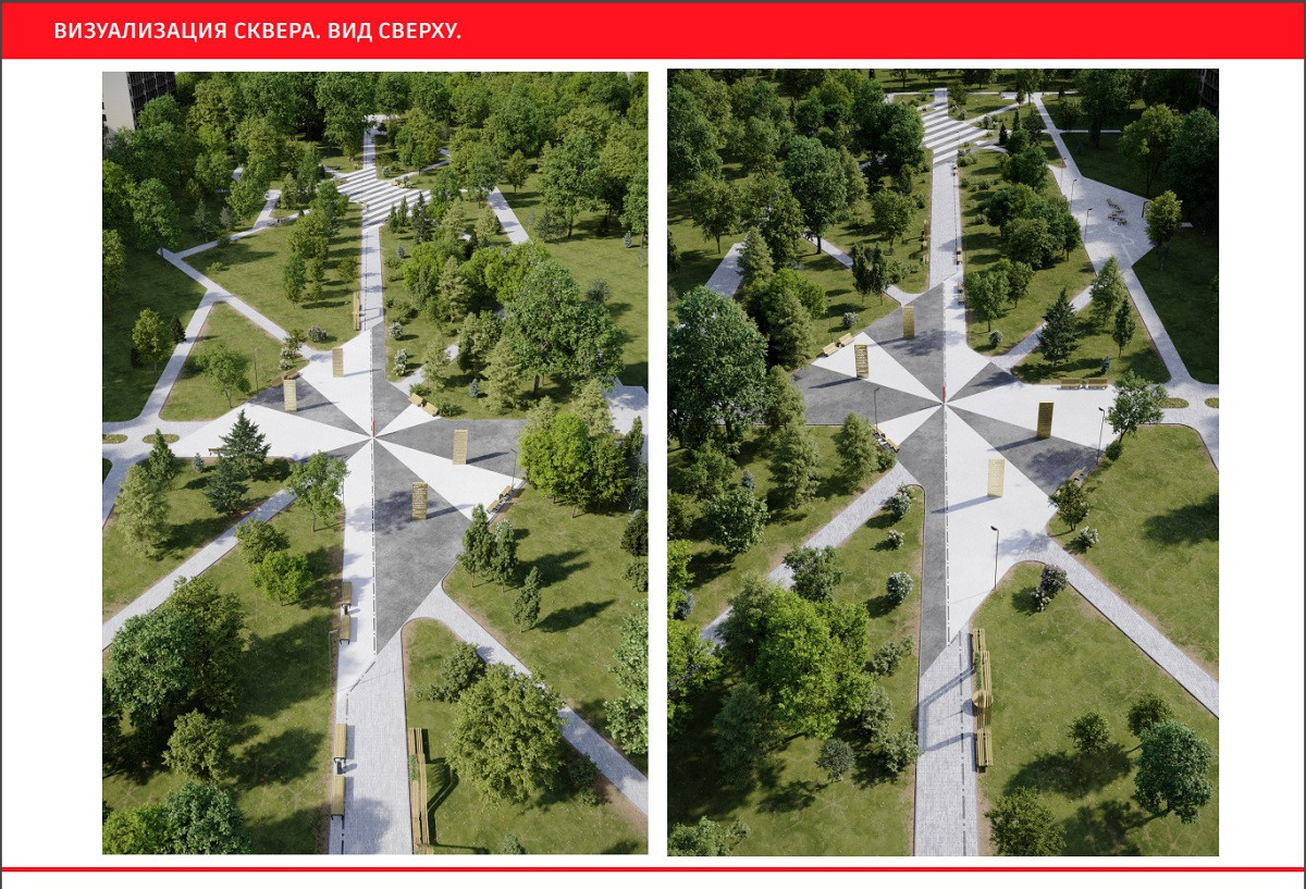 Одно из самых интересных решений предложено для сквера "Молодёжный" на пересечении проспекта Металлургов и улицы Воронова. Объект стал победителем голосования. В народе его называют сквер "Пограничников", поэтому основной темой стала государственная граница. Существующую дорожно-тропиночную сеть, центральную аллею и три площади сохранят, но оформят в соответствии с выбранной концепцией. Останется и символический пограничный столб. Вокруг него обустроят световую инсталляцию "Письма с границы домой". Стилистике границы также будут соответствовать особая пергола с лавочками и мощение брусчатки. Предусмотрены цветники, ландшафтная композиция, бульвар со скамейками-беседками, прогулочные зоны и локации для тихого отдыха. Помимо этого, будет оформлена входная группа со стороны улицы Воронова.