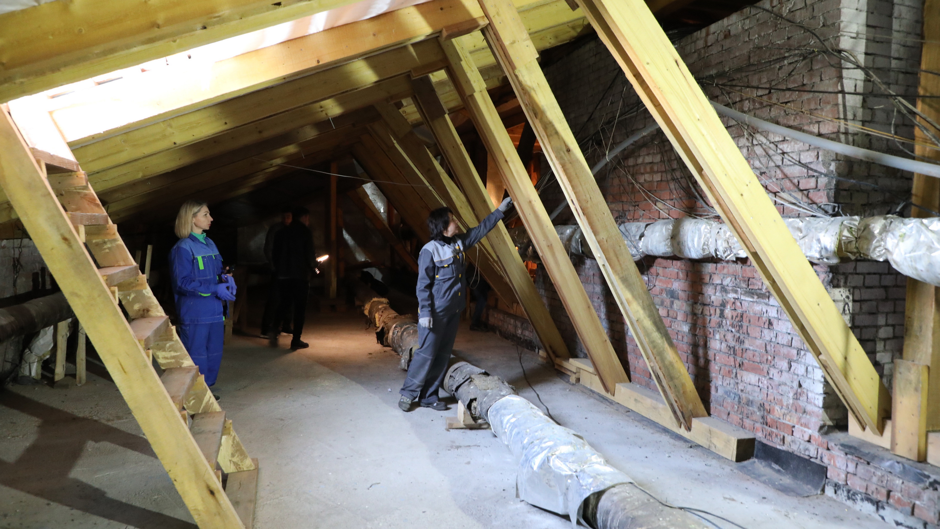 «По адресу ул. Советская, 4 подрядчик заменил кровельное покрытие, утеплил чердачное перекрытие, деревянные несущие конструкции. При выполнении работ было использовано - 151 кубический метр дерева, 9,5 тонн железа, более 20 кубических метров кирпича, 347 кубических метров утеплителя».