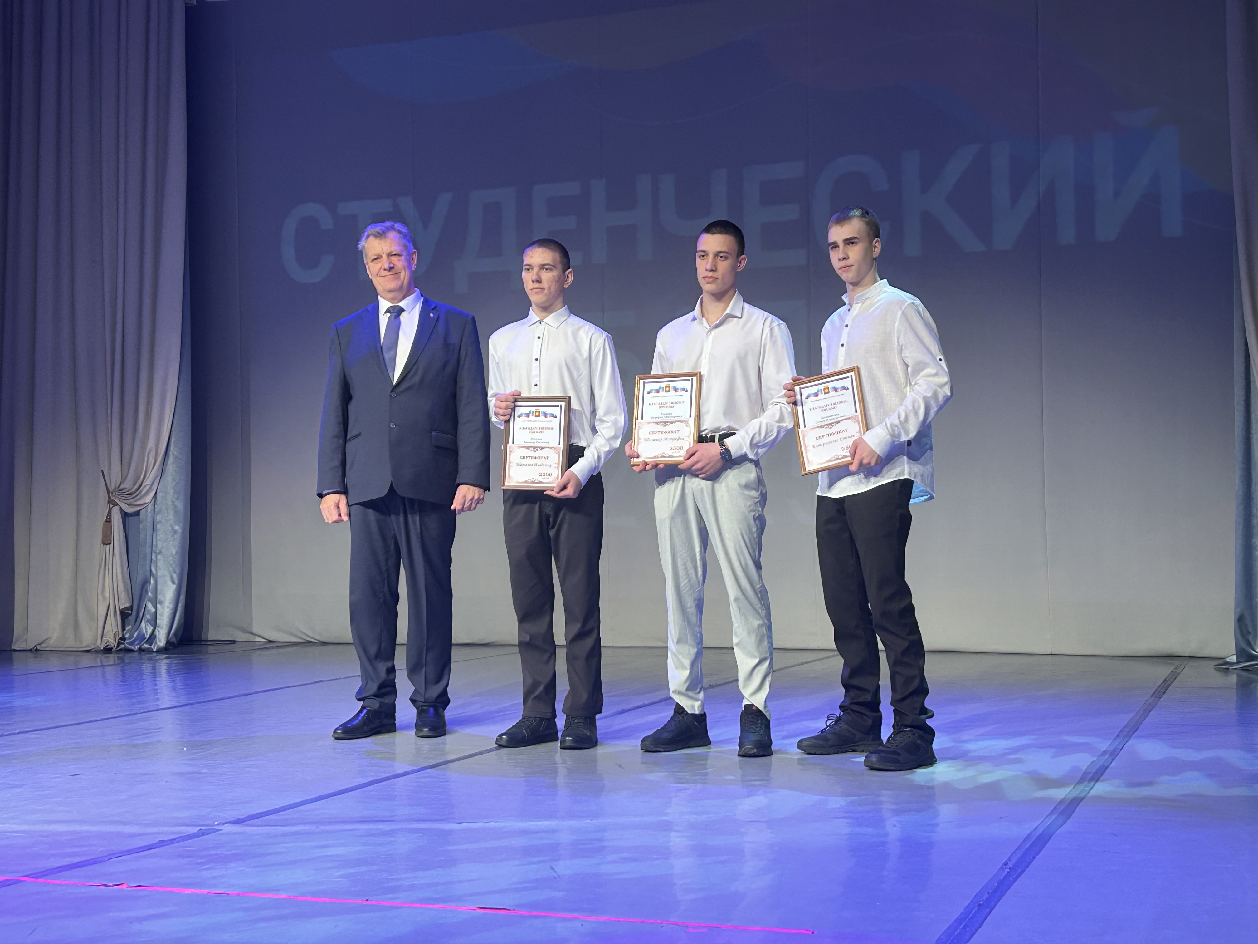 В официальной части праздника назаровских студентов поздравили и вручили благодарственные письма за успехи в обучении, творчестве и общественной жизни 1 зам. Главы города Александр Гейнрих и Председатель Назаровского городского Совета депутатов Ольга Мартус, заместитель Главы г. Назарово Елена Соломатова.