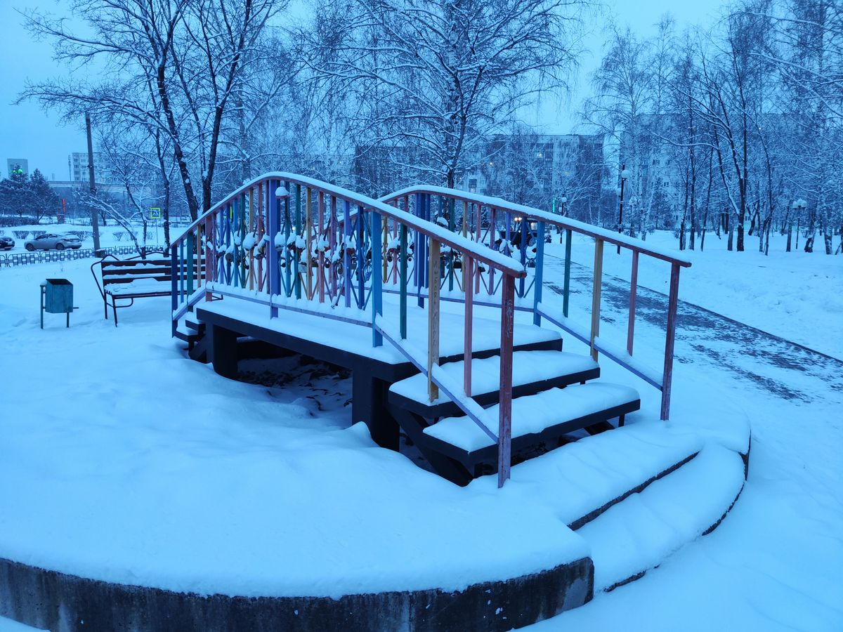Мостик любви и романтические качели под согнутым фонарем находятся в живописном месте по улице Ленинского Комсомола. Здесь часто гуляют парочки. И совсем рядом находится ЗАГС.