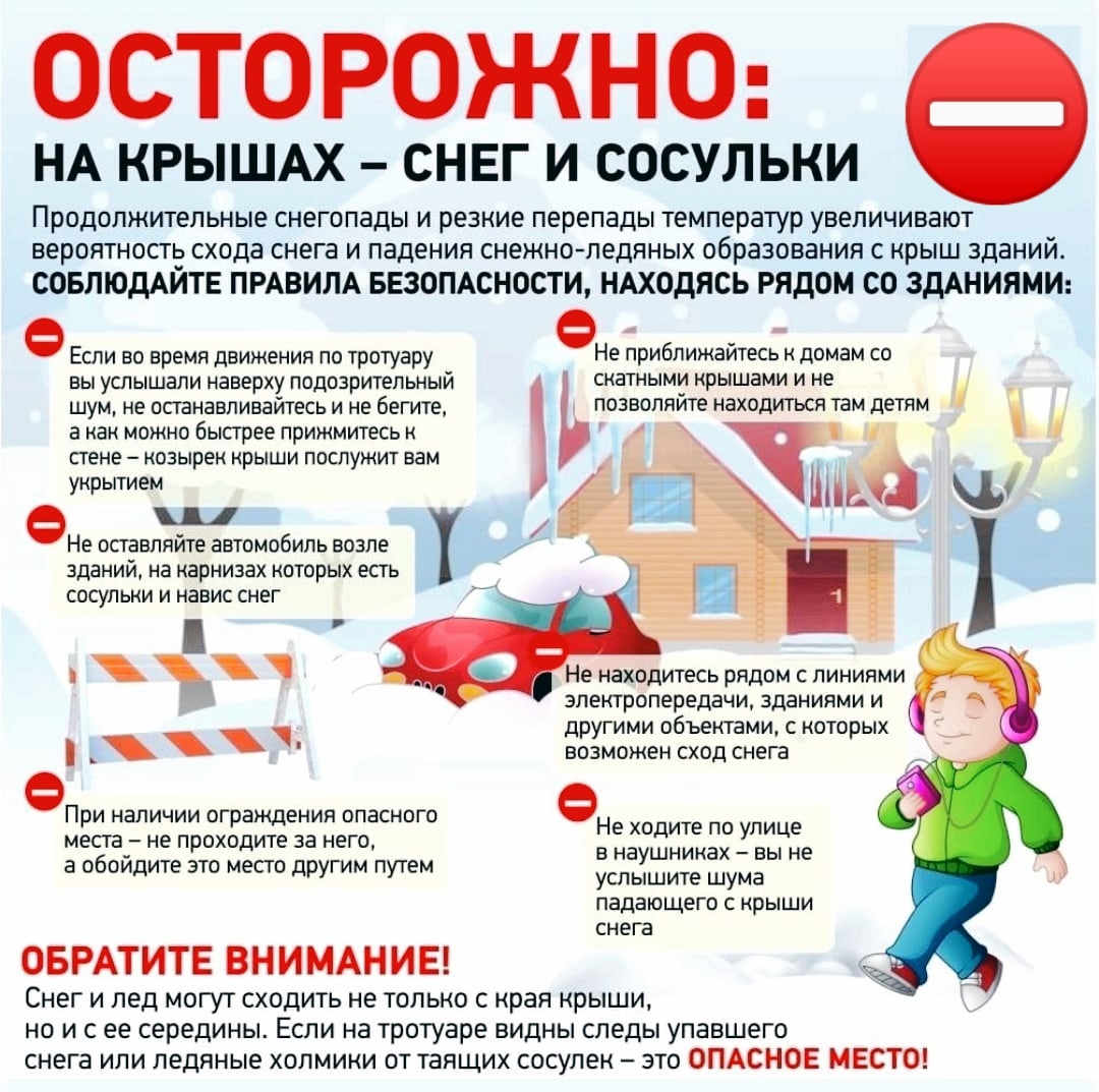 Осторожно: на крышах снег и сосульки! 10.03.2025г.