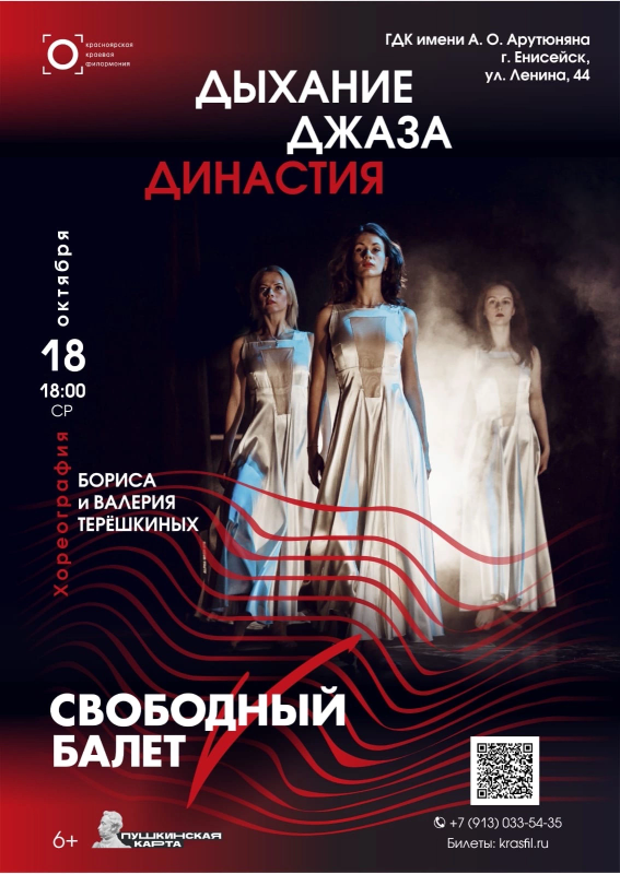 Свободный балет приглашает на премьеру концертной программы «Дыхание джаза. Династия». Это творческая находка автора, балетмейстера-постановщика Валерия Терёшкина, которая объединяет музыку и танец и направлена как на взрослых зрителей Свободного балета, так и на юных.