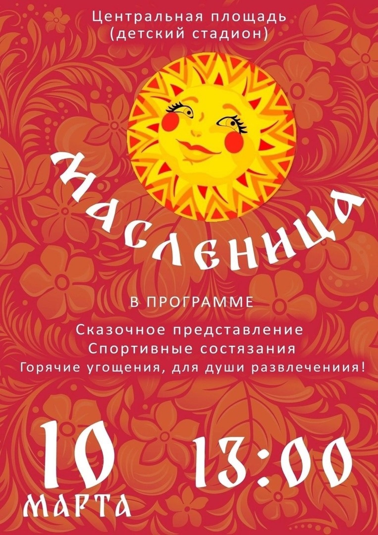 Народное гуляние «Широкая Масленица» 10 марта, 13:00 Центральный стадион,