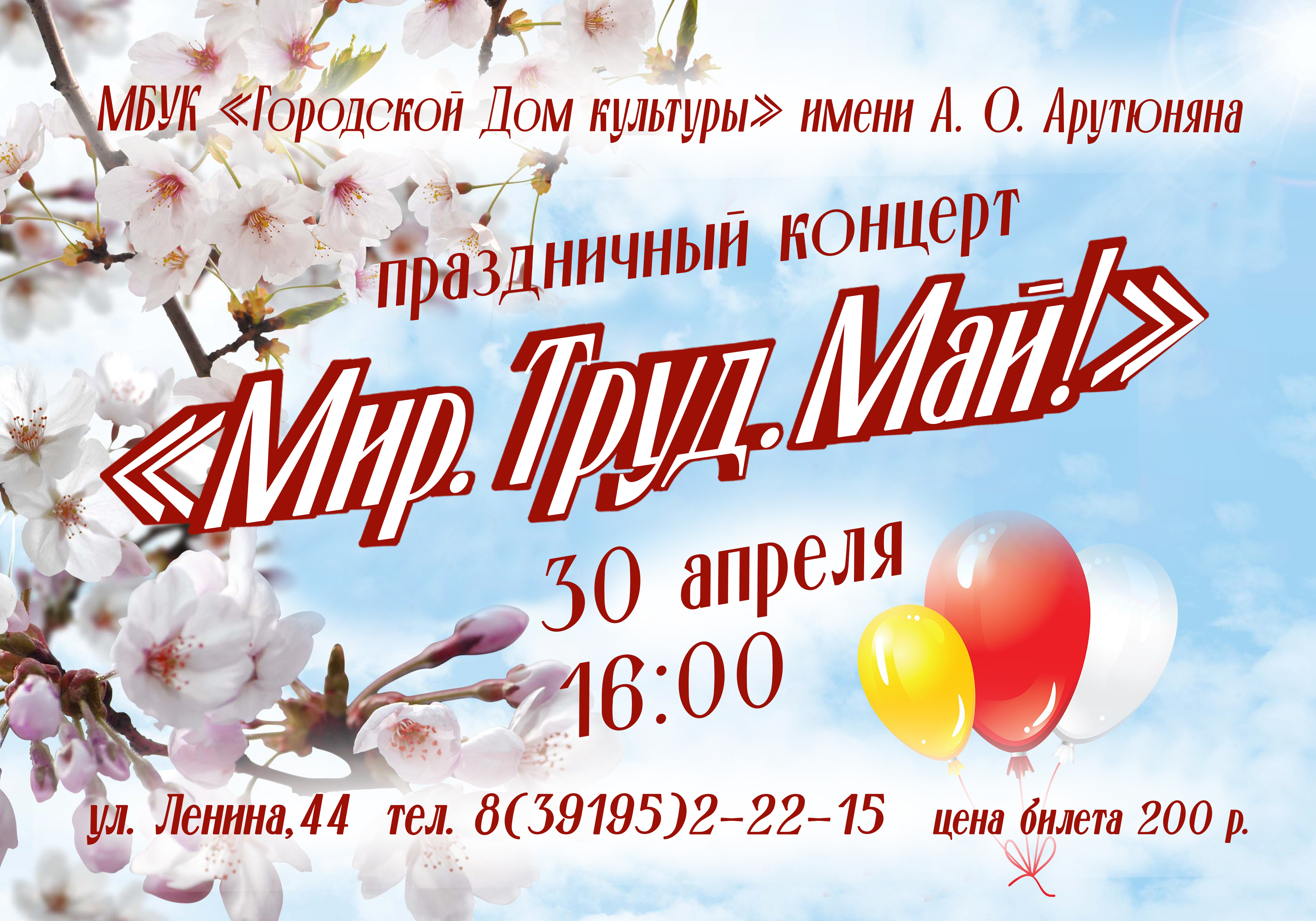 Театрализованный концерт "Мир. Труд. Май!" 30 апреля,16:00