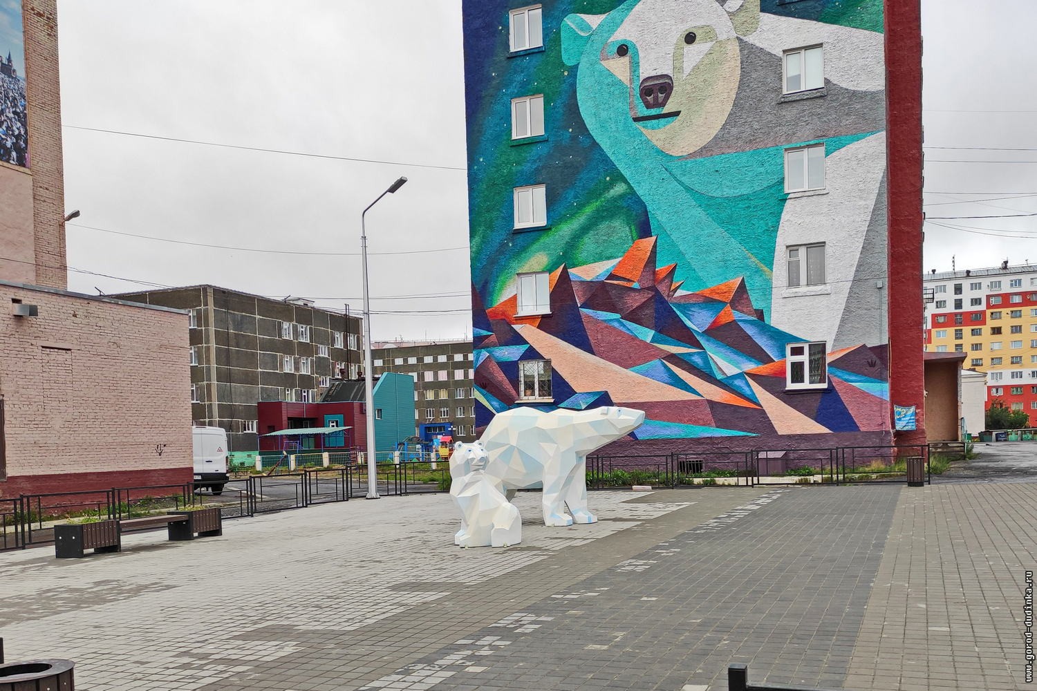 Напомним, сквер «Три медведя» был открыт в Дудинке в 2021 году. Фигурки животных по заказу ИП Малачинский А. К. изготовили специалисты Санкт-Петербургской фирмы «Form-A». Еще одним ярким элементом площадки стал мурал с изображением хозяина Арктики, с любопытством рассматривающего прохожих с торца дома № 5 А на улице Островского.