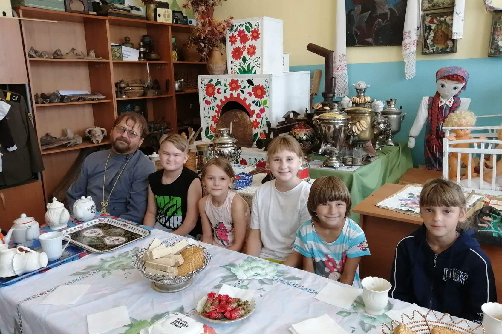 Отец Александр рассказал детям об истории иконы Казанской Божией Матери и об ачинском Казанском кафедральном соборе. За чаепитием ребята рассмотрели и другие иконы, приняли участие в играх и других активностях.