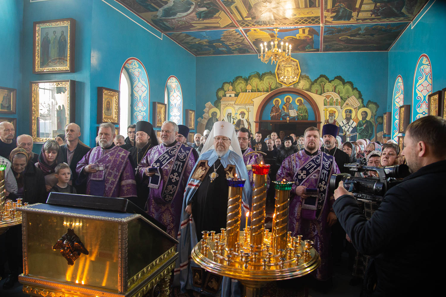 По окончании Божественной литургии владыка Пантелеимон обратился к собравшимся со словом проповеди , а затем вручил награды попечителям храма Покрова Божией Матери города Назарово.