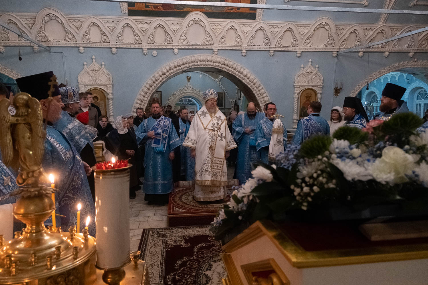 Епископ Агафангел совершил утреню с чтением акафиста Пресвятой Богородице в кафедральном соборе Норильска