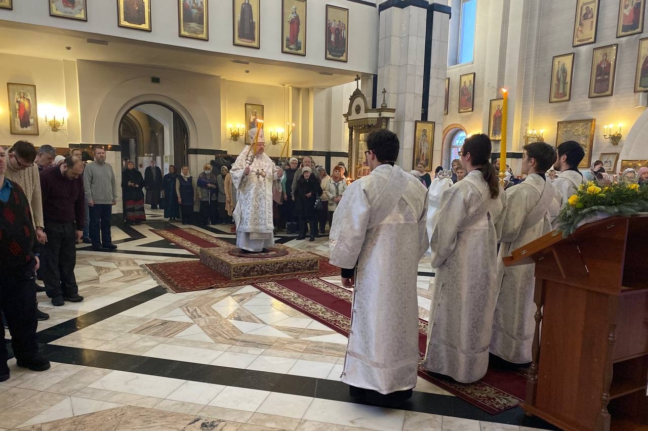 Епископ Агафангел совершил утреню с чтением акафиста Пресвятой Богородице в кафедральном соборе Норильска