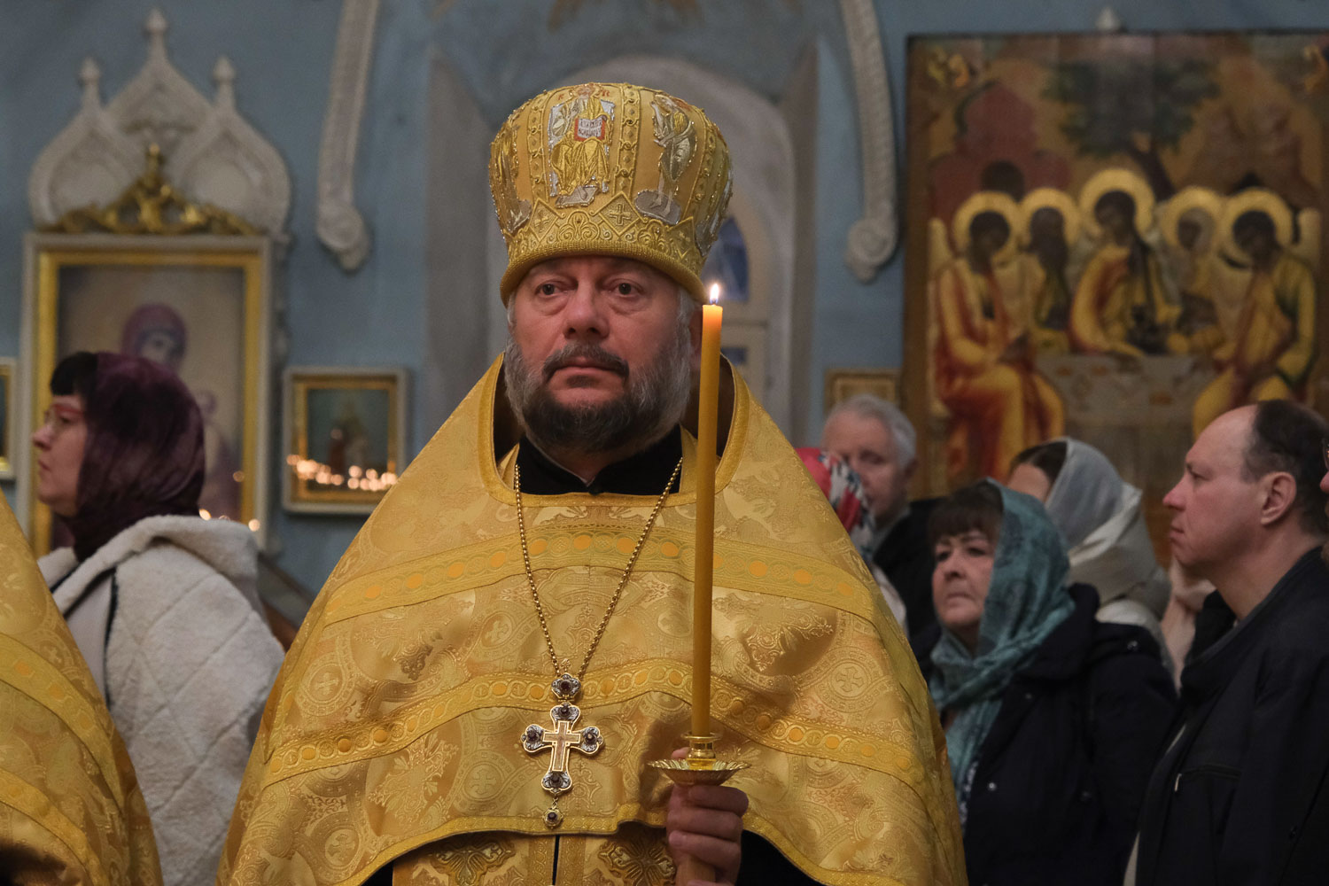 Епископ Агафангел совершил утреню с чтением акафиста Пресвятой Богородице в кафедральном соборе Норильска