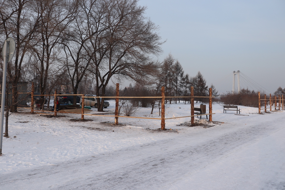 Площадку под строительство нового православного храма начали готовить в Красноярске на Стрелке напротив Большого концертного зала. Рабочие сейчас возводят забор вокруг будущей стройплощадки, здесь установлен строительный вагончик.