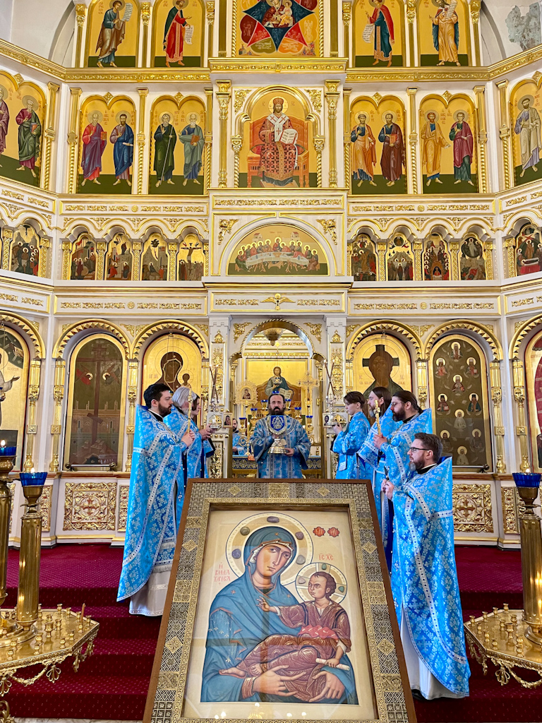 1 апреля 2023 года, в субботу 5-й седмицы Великого поста — праздник Похвалы Божией Матери (Суббота Акафиста), Преосвященнейший Агафангел, епископ Норильский и Туруханский,