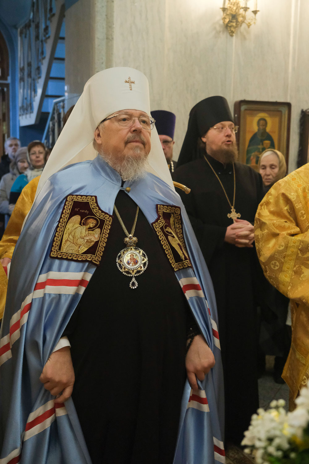 Его Высокопреосвященству сослужили: руководитель Административного секретариата Красноярской епархии, настоятель Покровского кафедрального собора митрофорный протоиерей Владимир Дорош; секретарь Красноярской епархии, благочинный церквей Левобережного городского округа Красноярска, наместник красноярского Успенского мужского монастыря игумен Иннокентий (Нилов); благочинный больничных храмов города Красноярска, настоятель красноярских храмов апостола Андрея Первозванного и великомученика Димитрия Солунского иерей Виталий Вальтер; председатель Отдела по религиозному образованию и катехизации Красноярской епархии, настоятель храма святых мучениц Веры, Надежды, Любови и матери их Софии иерей Андрей Бабин; ключарь Покровского кафедрального собора города Красноярска иерей Игорь Лыткин.