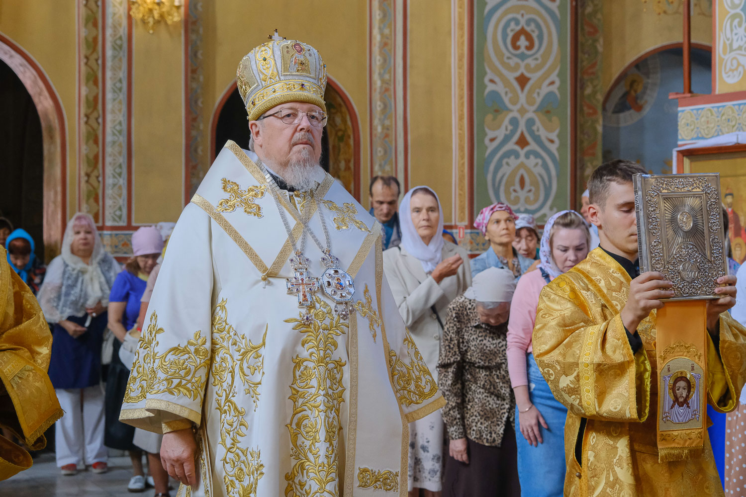 Его Высокопреосвященству сослужили: руководитель Административного секретариата Красноярской епархии, настоятель Покровского кафедрального собора города Красноярска митрофорный протоиерей Владимир Дорош; секретарь Красноярской епархии, благочинный церквей Левобережного городского округа Красноярска, наместник красноярского Успенского мужского монастыря игумен Иннокентий (Нилов); благочинный Железногорского церковного округа, настоятель собора Архангела Михаила города Железногорска протоиерей Роман Нещерет; благочинный больничных храмов Красноярска, настоятель красноярских храмов апостола Андрея Первозванного и великомученика Димитрия Солунского иерей Виталий Вальтер. Также владыке сослужил миссионер, наместник Свято-Косминской мужской пустыни игумен Петр (Мажетов).