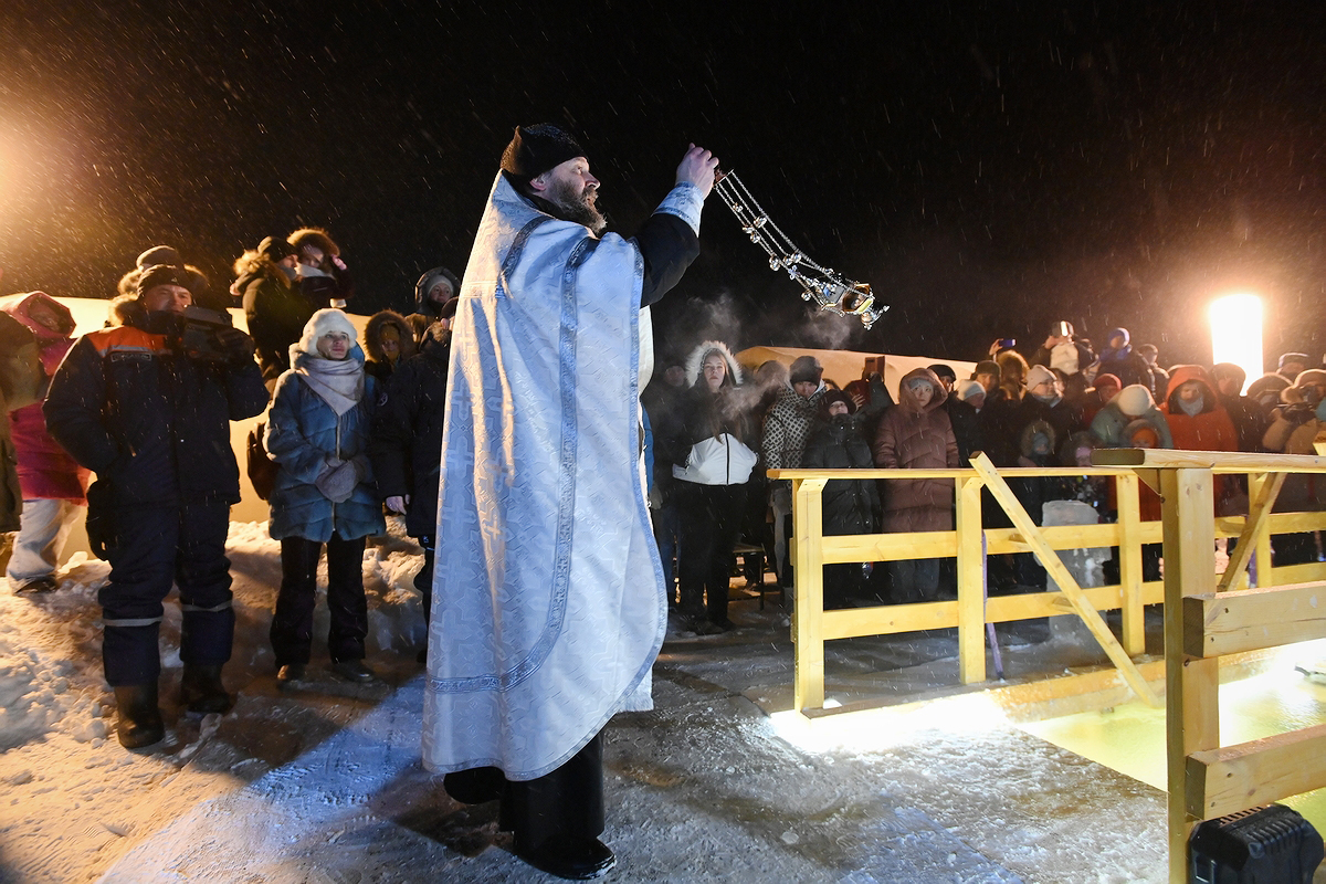 Традиционно перед началом крещенских омовений священник Норильской епархии поздравил сильных духом норильчан с праздником и совершил праздничное богослужение. Он прочел молитвы, трижды погрузил православный крест в прозрачную иордань, а после этого окропил пришедших к проруби освященной водой.