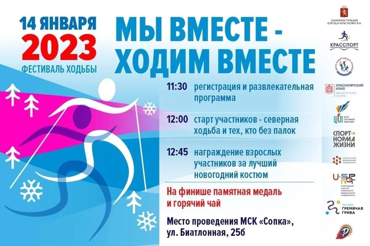 В Красноярске 14 января состоится фестиваль ходьбы для всех желающих. Он пройдет на Сопке (Биатлонная, 25б).