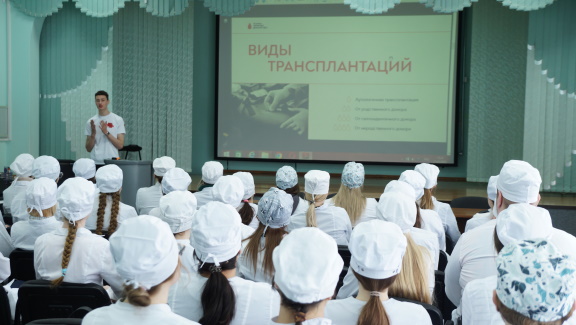 В актовом зале в это время прошла лекция по пропаганде донорства крови и донорства костного мозга «Дарим жизнь вместе».
